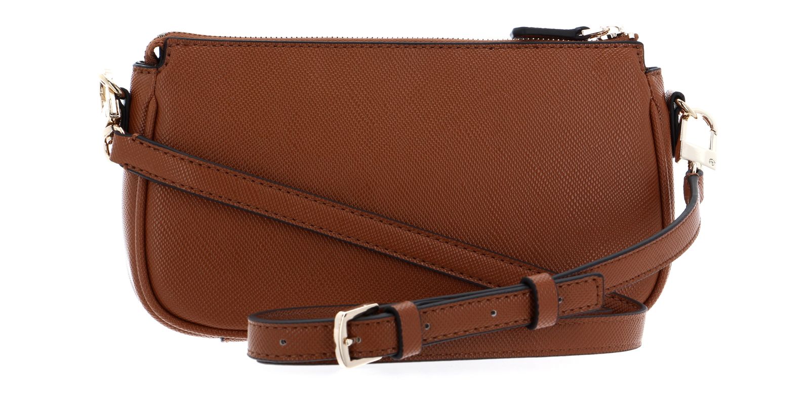 • GUESS cross body bag with a great feel Scope of delivery GUESS set: cross body bag with label, shoulder strap shoulder bag with label and cordon Data cross body bag: Dimensions: width approx. 24 cm, height approx. 13 cm, depth approx. 4.5 cm Weight: approx. 280 g Color: Light Cognac (light brown) 1 shoulder strap adjustable, removable: approx. 110 cm - 130 cm Material: 100% polyurethane Scope of supply: