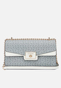 •  Material : Made from eco-friendly peony debossed polyurethane (PU) with sleek self-trim Handles & Strap :