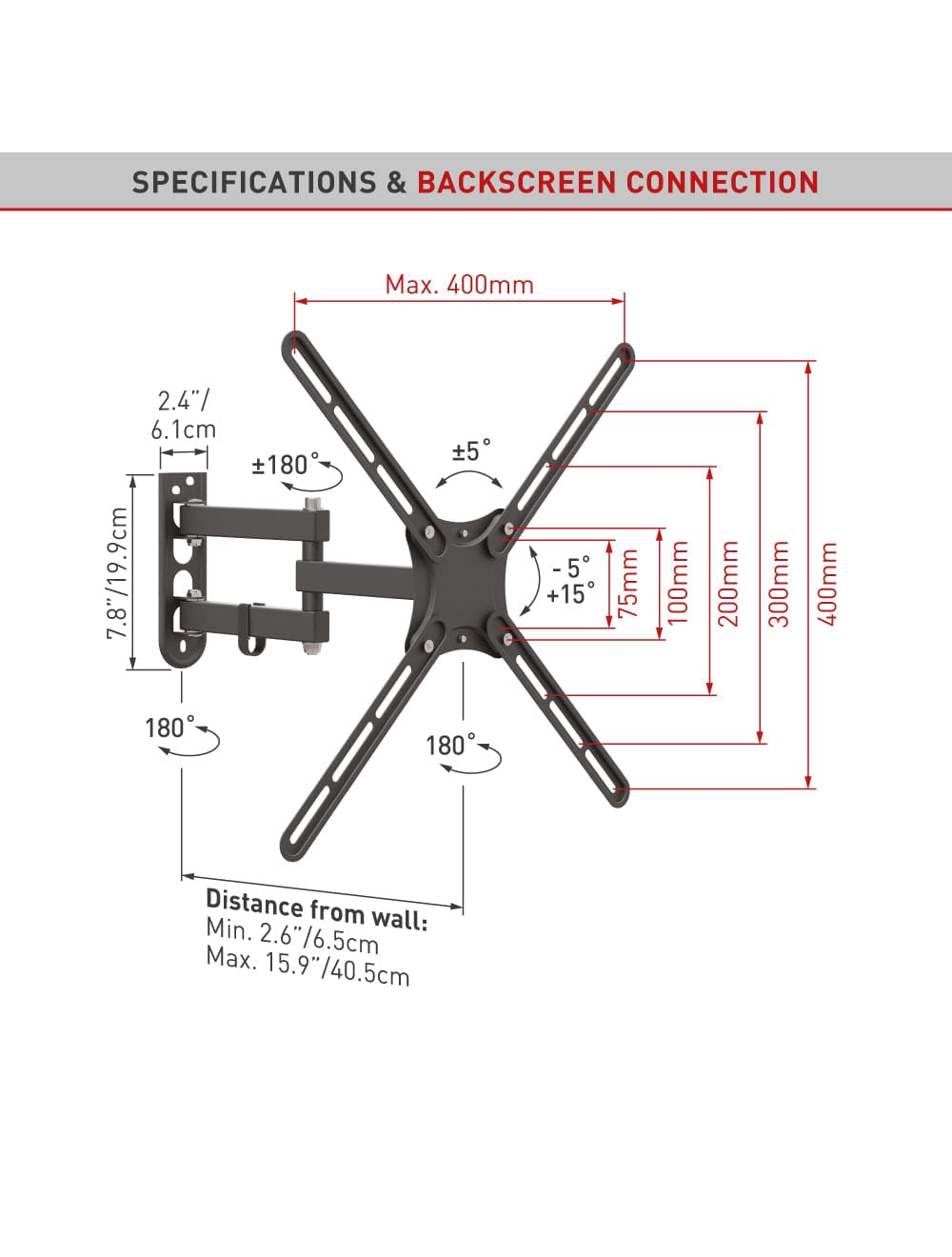 ⢠Fits mounting holes on back of the screen up to 400 x 400mmĀ