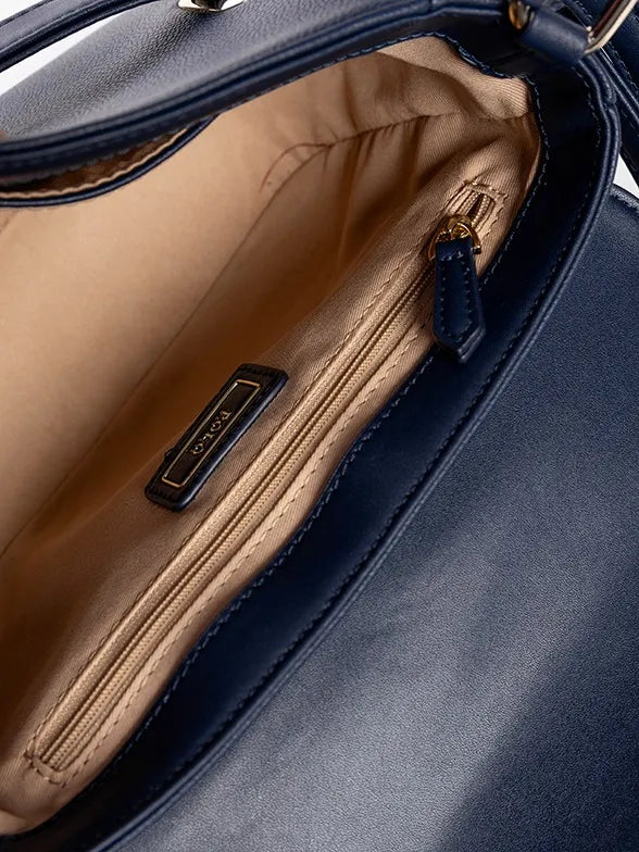 Step out with an air of elegance and finesse when you select the Flapover Sling to accompany you through the day. This perfectly proportioned bag with a long adjustable shoulder strap features a flapover fitted with a magnetic closure which slides easily under the distinctive strap detail with a decorative turn-lock closure to add an eye-catching chic design element. The Polo Carlton collection in Navy and Hazelnut is a striking way to spice up your accessory wardrobe.