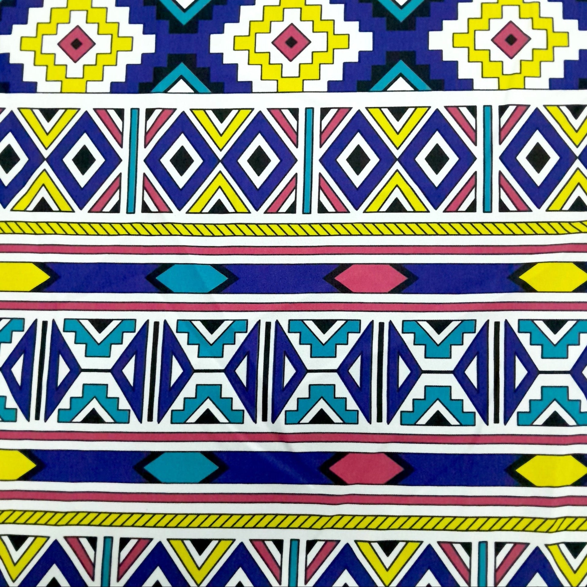 Printed Mini Matt Ndebele Fabric 140 cm fabric showcases a precise Ndebele design printed on a smooth matte surface, measuring 140 cm wide for versatile use. This fabric is ideal for professionals seeking authentic cultural patterns combined with a refined texture, delivering both durability and elegance for high-quality apparel and interior design projects.