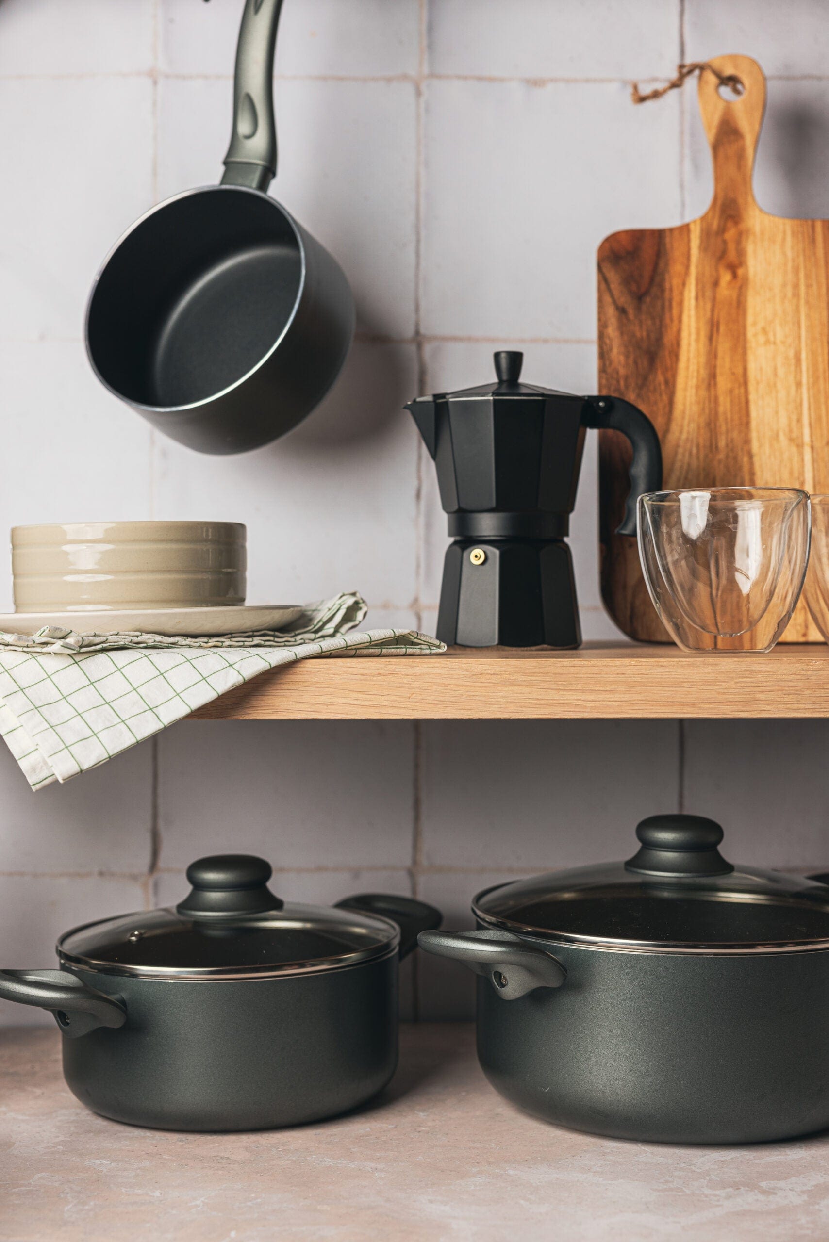 The Pressed Aluminium My Pan 20cm Non-Stick Saucepan will revolutionize your cooking experience everyday! Crafted with precision and designed for perfection, this saucepan is a kitchen essential that will elevate your culinary creations to new heights. The non-stick coating ensures effortless cooking and easy cleanup, while the 16cm size is perfect for small to medium-sized portions. It’s sturdy construction and heat-resistant handle, you can confidently whip up delicious sauces, simmer delectable soups, and master the art of sautéing. The tempered glass lid seals in flavors and allows for precise temperature control, ensuring your dishes are cooked to perfection every time. It is suitable for all hobs and is induction friendly.