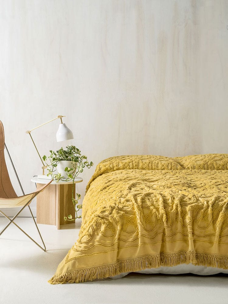 This beautifully nostalgic and intricate bed cover is made from detailed cotton chenille. It’s the absolute perfect in-between for those who get too hot for duvets and too cold for sheets. Complete with tassel fringes, this cover looks even more incredible layered with this seasons duvet covers. This bed cover will generously fit a queen and king size bed.