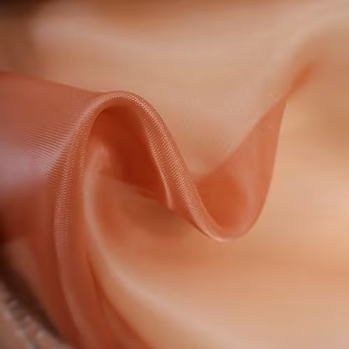 Satin organdy is a lightweight, sheer fabric that combines the crisp texture of organdy with the smooth, glossy finish of satin. It has a delicate, translucent appearance and a subtle sheen, making it ideal for elegant garments, overlays, and decorative applications such as bridal wear and evening gowns.